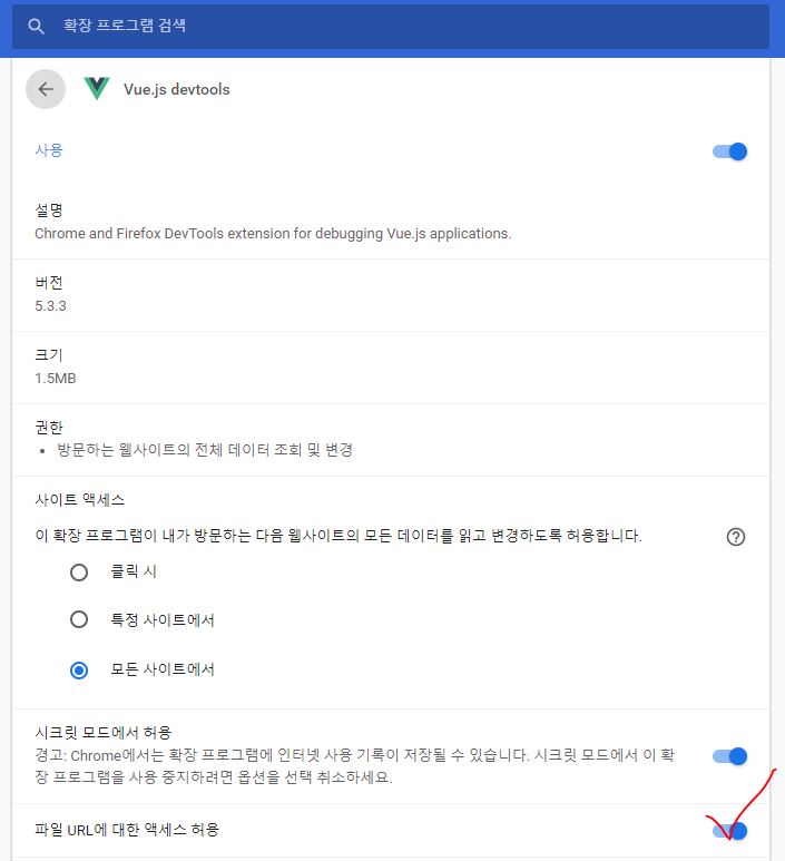확장 프로그램 상세설정으로 들어가서 파일 URL에 대한 액세스 허용이 필요함