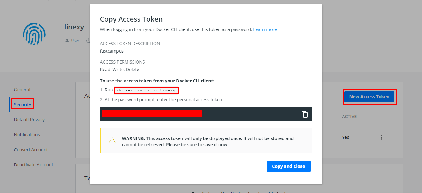 도커 허브 로그인 후 설정 접속 후