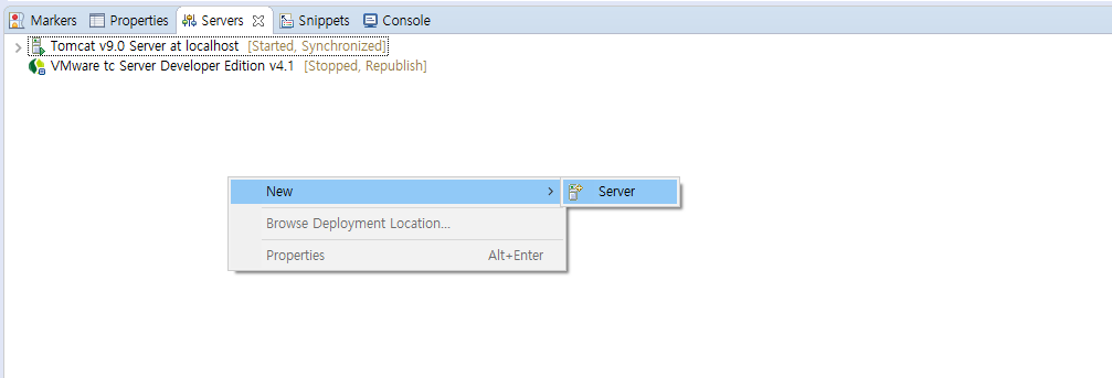 -> Servers 창 우클릭 -> New -> Server