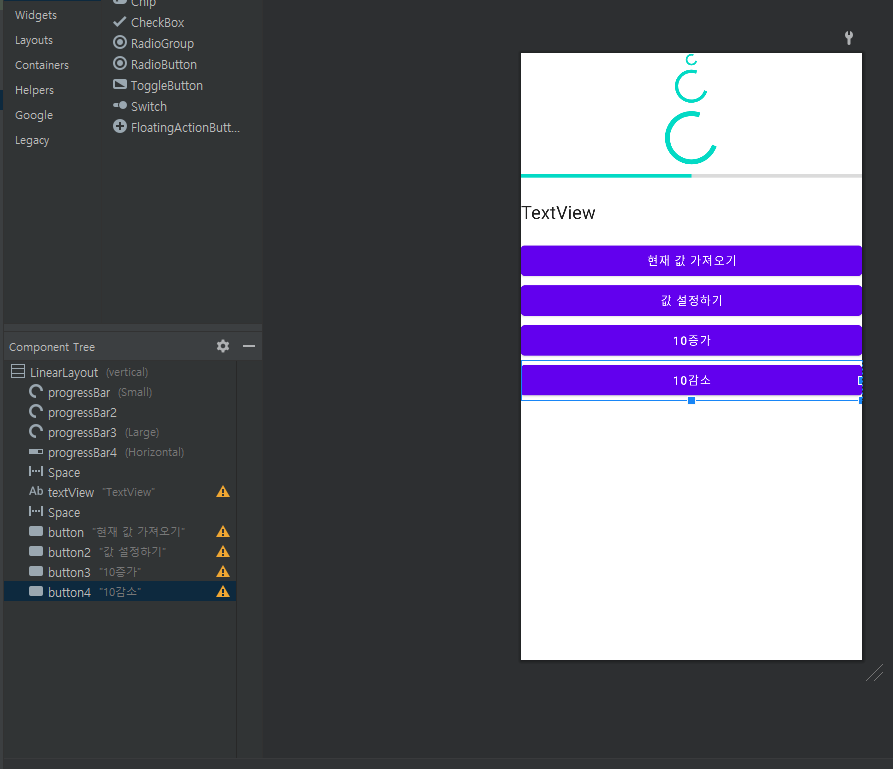 textView.text = "현재 값 : ${progressBar4.progress}"