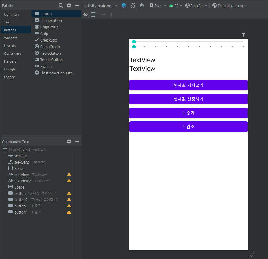 SeekBarChange : SeekBar의 상태가 변경되었을 때