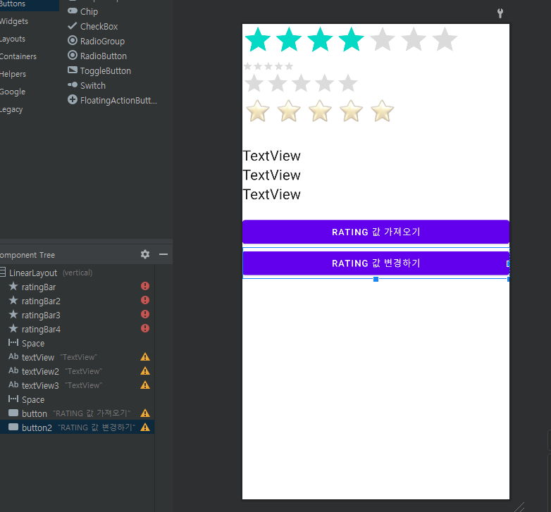RatingBarChange : 별 점이 변경되었을 때