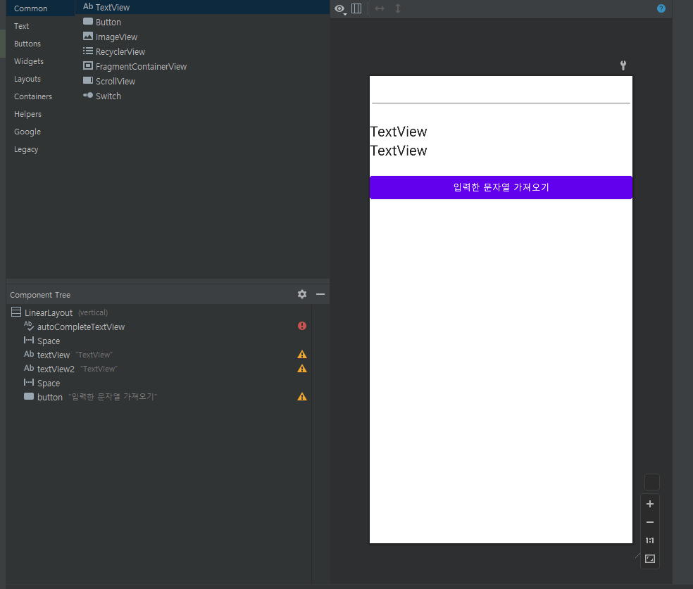 EditText에 자동완성 기능을 추가한 View 이다.