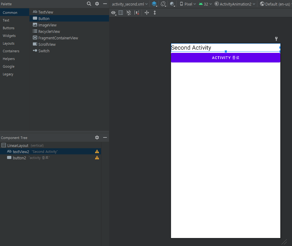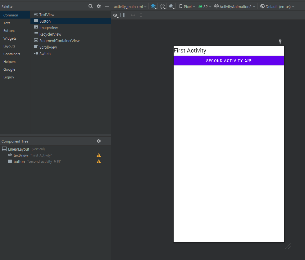 주의할 점은 나타나는 Activity, 사라지는 Activity 모두 설정 해야한다.
