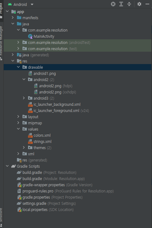 mipmap 폴더의 이미지는 바탕화면 런처에서 표시되는 아이콘의 크기에 따라 이미지가 선택된다.