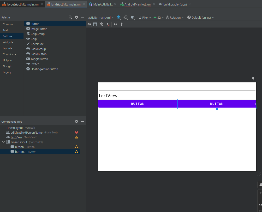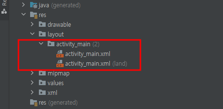 layout 폴더에 수식어를 추가하면 회전에 따른 화면을 따로 적용할 수 있다.