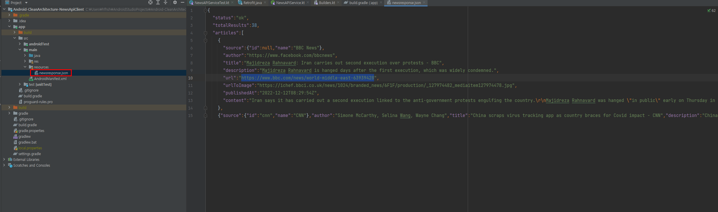 response josn 값을 저장할 파일을 resources 폴더를 만들고 하위에 저장(newsresponse.json)