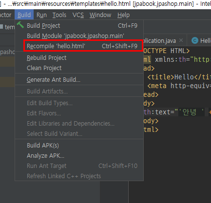 이제 작업도중 파일 수정시 스프링 재시작 하지 않고 recompile하면 수정 적용 가능